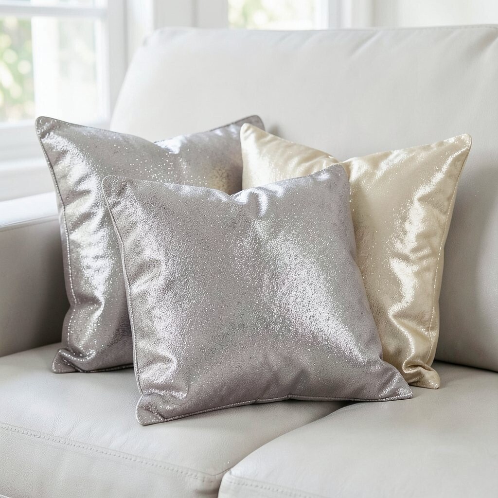 They are easy to swap with the seasons, which makes them very flexible. Mix them with plain pillows so the shine feels balanced, not too busy. If you want a lower-cost update, buy just one or two accent pillows and place them where the eye lands first.