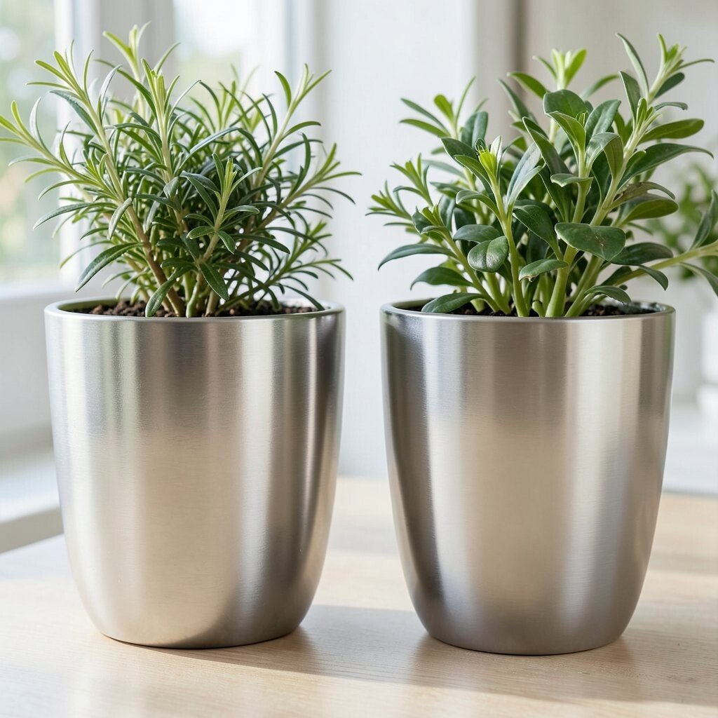Metallic planters give plants a bright home that feels lively and clean. Their shine makes green leaves look even fresher and more full of life.