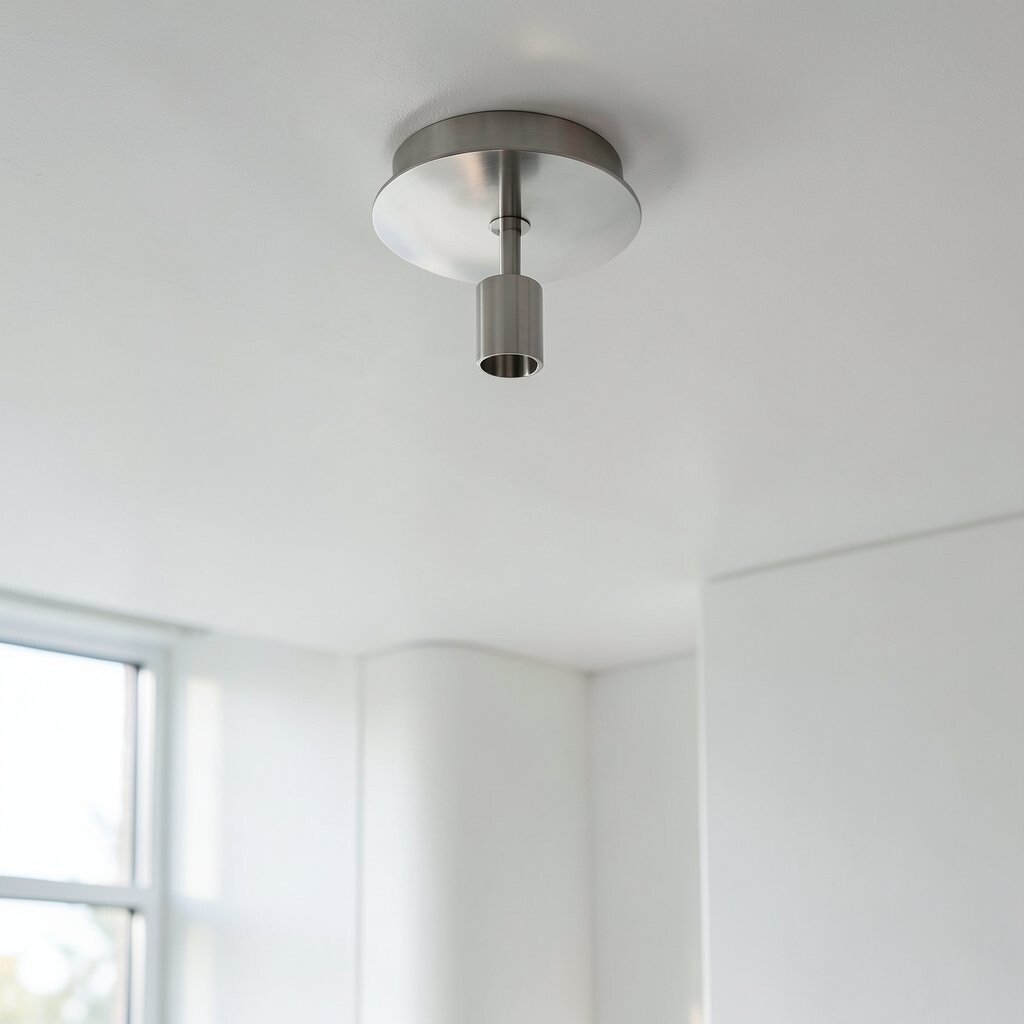 Metallic ceiling fixtures can change the mood of a room fast. Their bright surface draws the eye up and makes the whole space feel more complete.