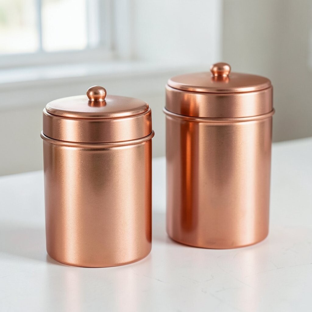 They help keep dry goods neat while adding style at the same time. Copper works well with white tile, dark wood, and even simple open shelving. If you are watching your budget, start with one canister set and build the look slowly.