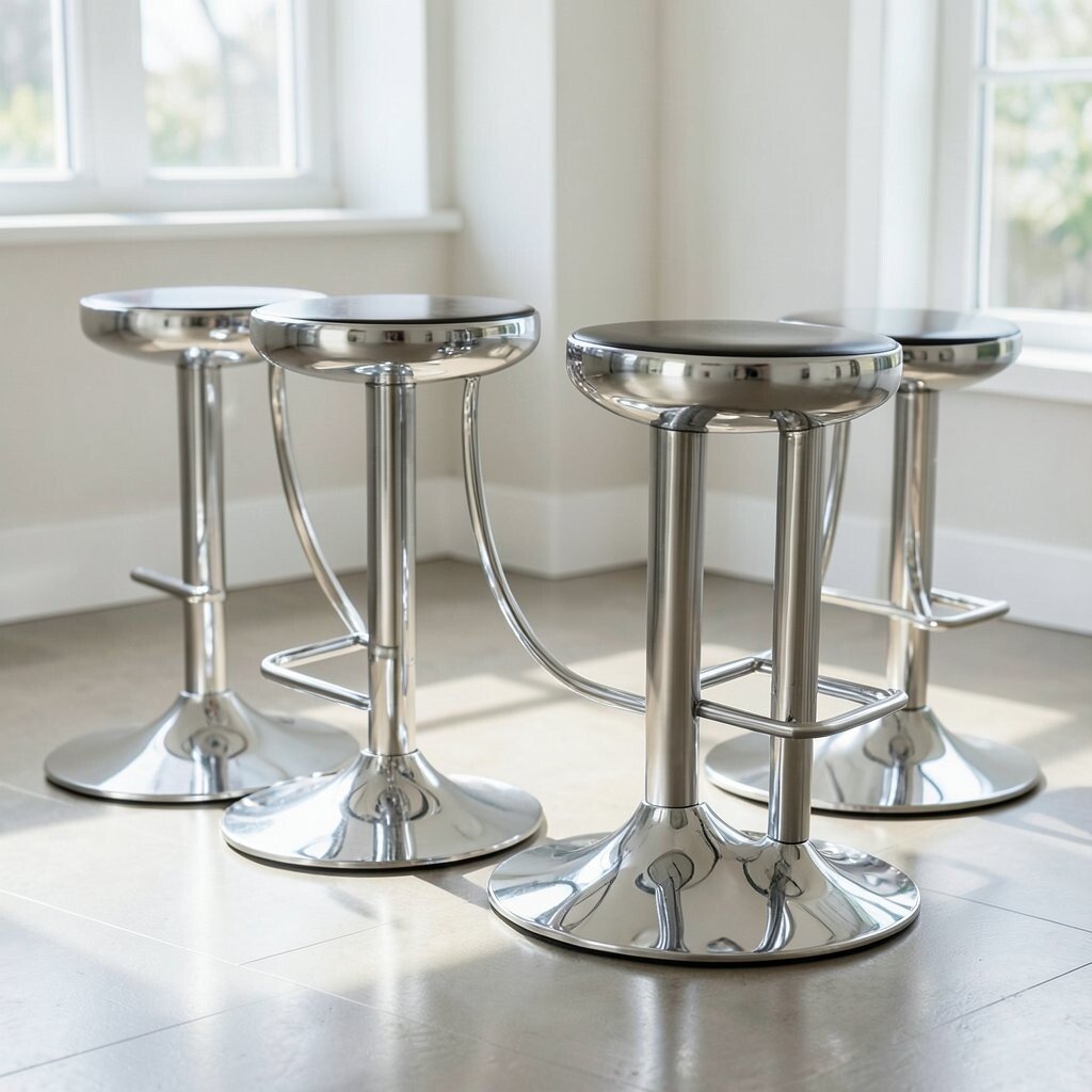Glossy metallic stools bring a fun, modern shine to kitchens and work areas. Their smooth finish can make a room feel energetic and stylish.