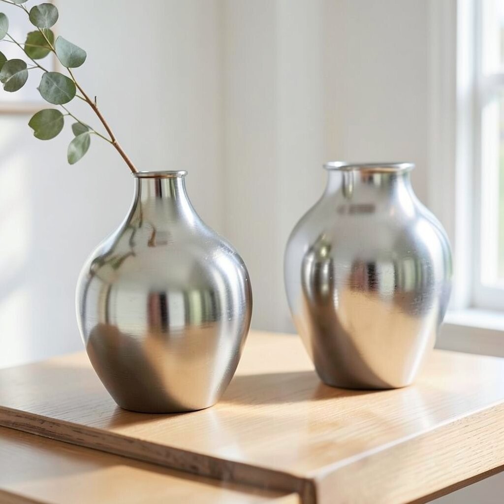Choose gold for warmth, silver for a crisp look, or bronze for a grounded feel. Even on a plain shelf, a shiny vase can make the whole spot feel bright and thoughtful.