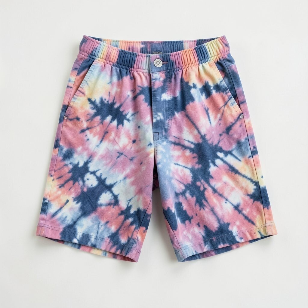 Bright colors swirl across the fabric, creating a playful and eye-catching look. Pair them with a plain white tee for a balanced outfit.