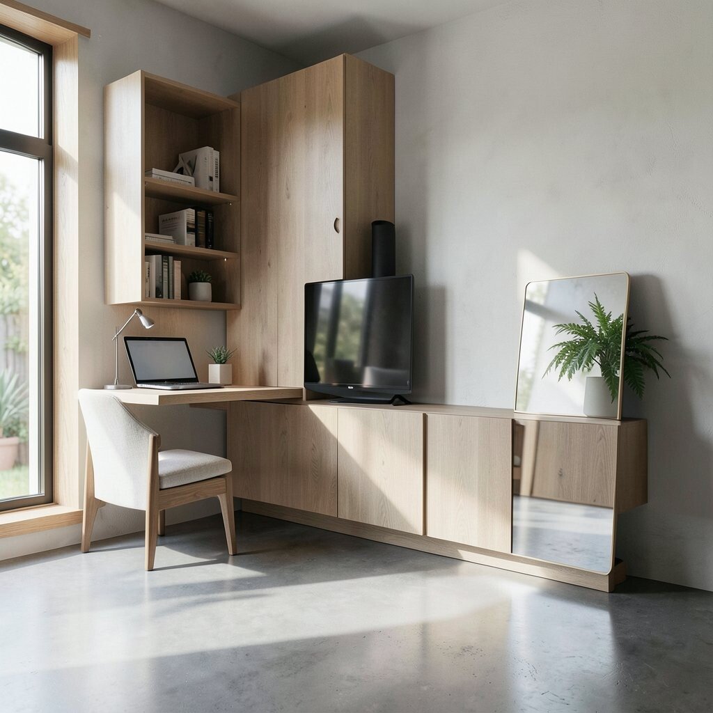 Functional storage is essential for a clean, organized look. Built-in shelves and cabinets can provide ample space.