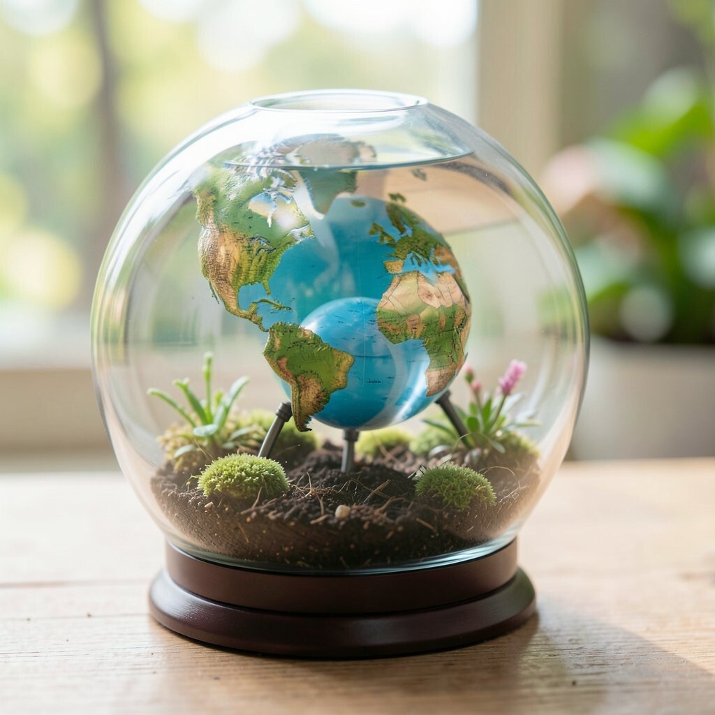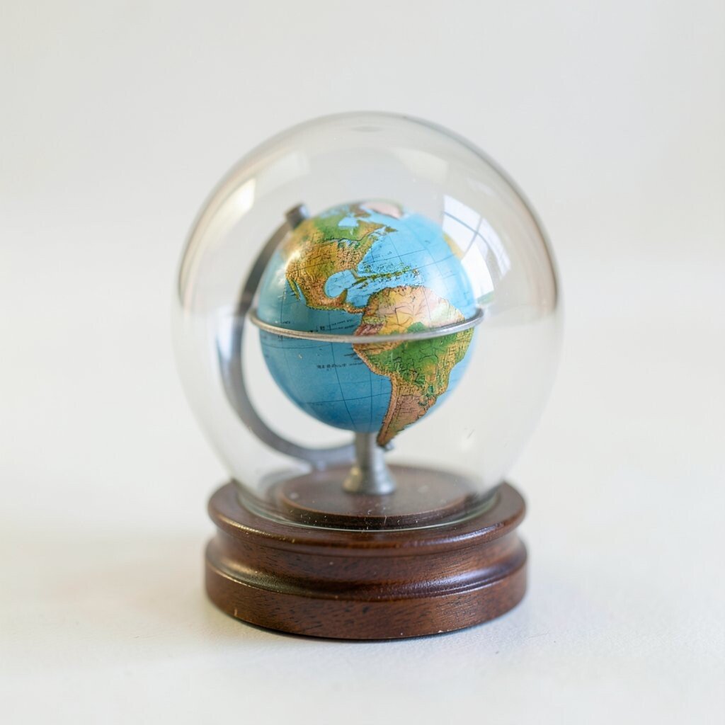 A tiny globe under a clear dome feels magical and neat. The dome gives it a museum-like look that can make a small object feel very special.