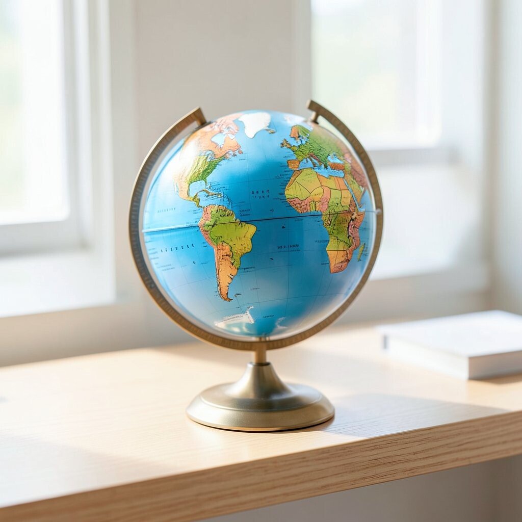 A miniature globe in a reading corner can make learning feel fun and inviting. Its bright colors and round shape can catch a child’s eye right away.