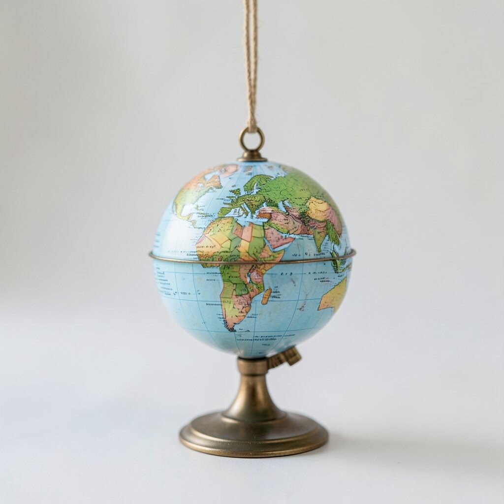A hanging mini globe ornament adds surprise and movement to a room. It can sway gently and catch the eye in a fun, light way.