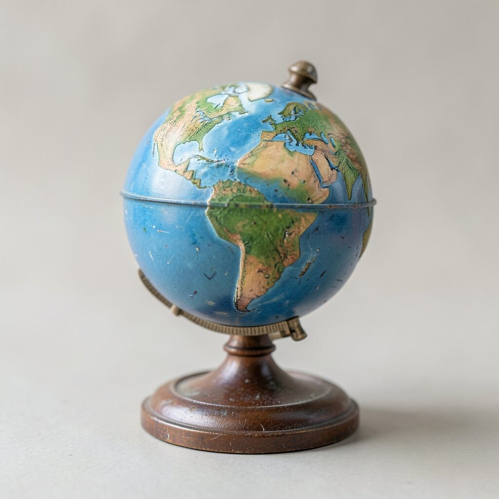 A miniature globe with a weathered finish has a worn-in charm that feels cozy and lived-in. The faded look can make it seem like it has a story to tell.
