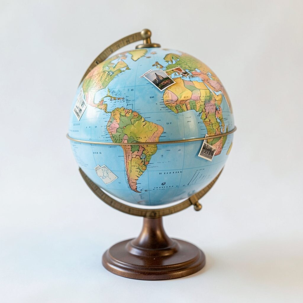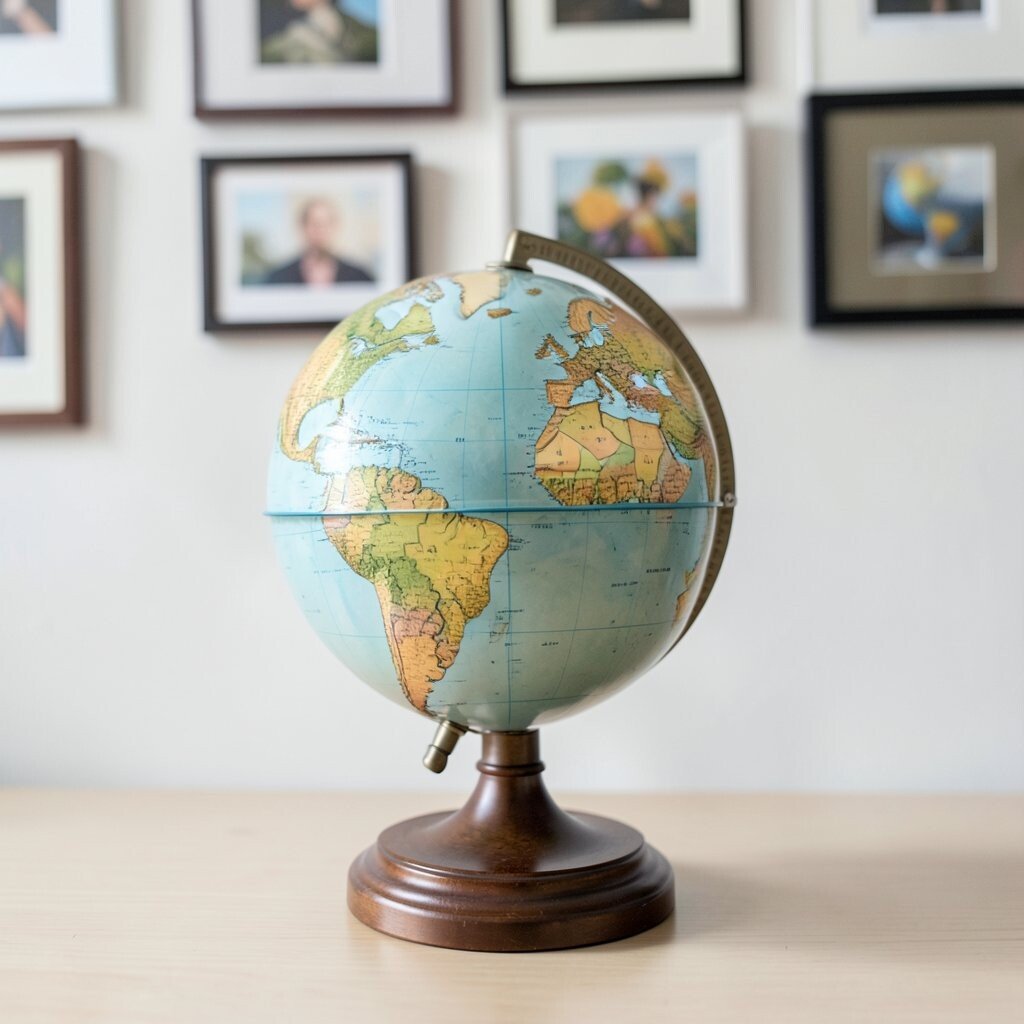 Choose art that shares a color or theme with the globe so everything feels connected. This is a stylish way to make a travel lover’s wall feel personal and full of life.