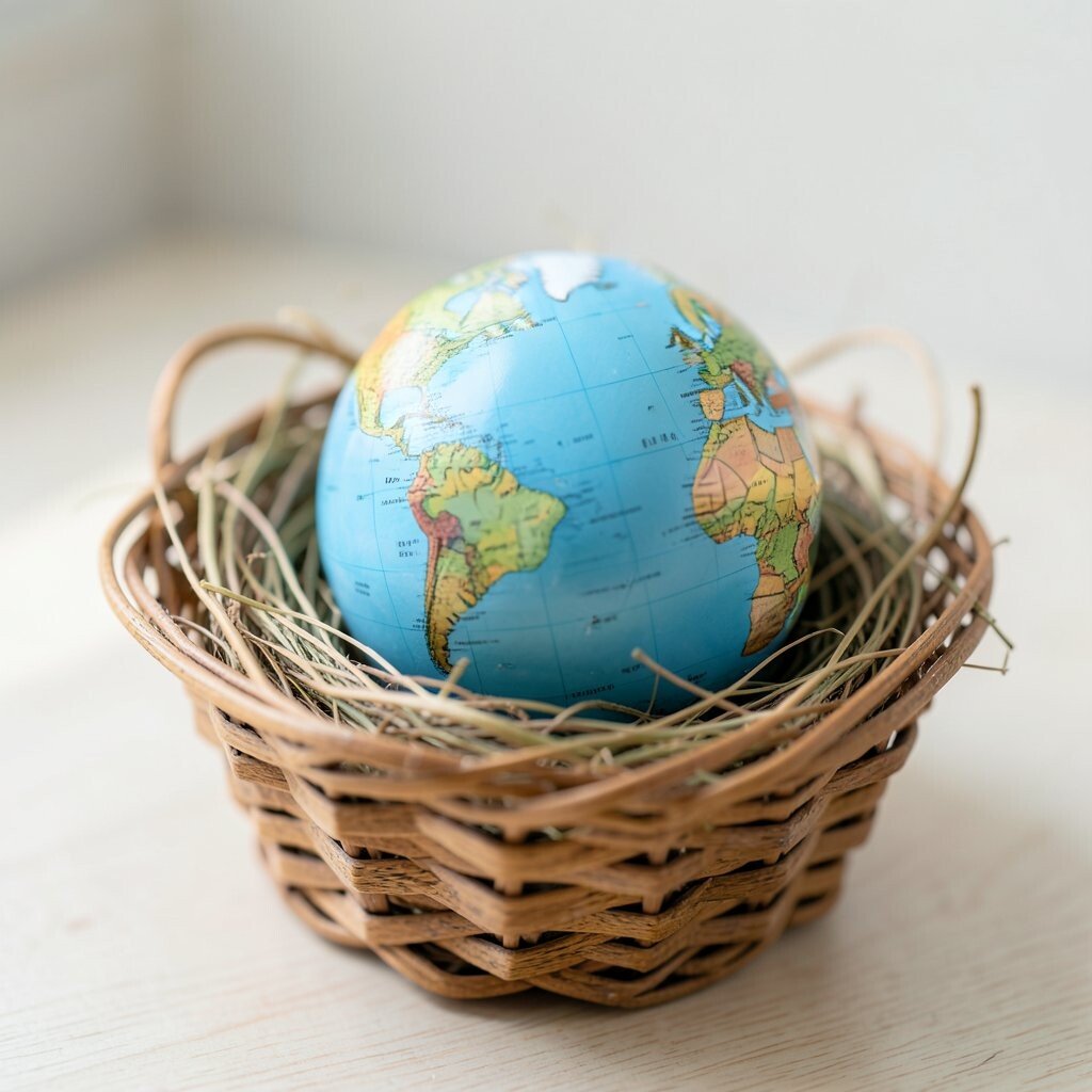 A miniature globe tucked into a woven basket feels soft and homey. The basket adds texture and makes the globe look cozy instead of formal.