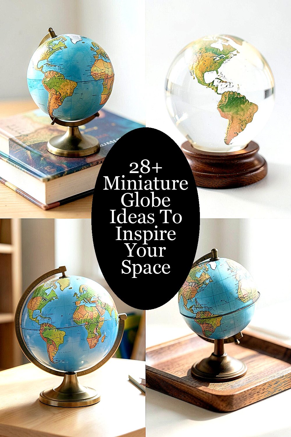 A tiny globe inside a terrarium style display feels fresh and a little whimsical. Glass, moss, stones, and the globe together can create a tiny world scene.