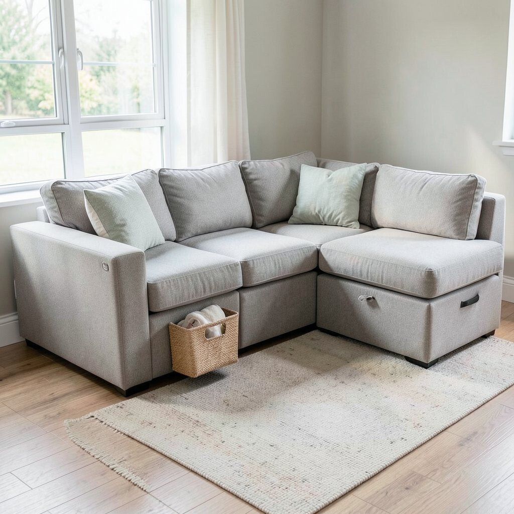 A family-friendly sectional with storage is a practical choice. It combines seating with hidden compartments to declutter your space.
