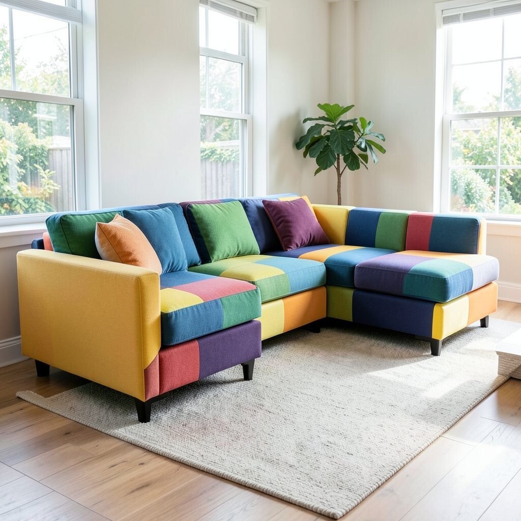 A bright and bold modular sectional can be the centerpiece of your living room. Imagine a couch in vibrant colors like teal or mustard.