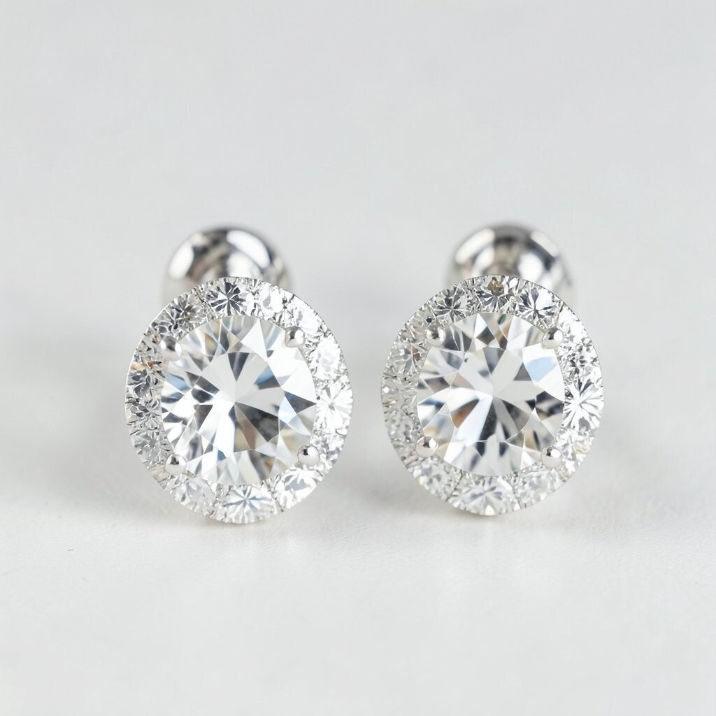 Halo earrings offer a perfect blend of vintage charm and modern sparkle. The central moissanite stone is surrounded by smaller gems, enhancing its brilliance.
