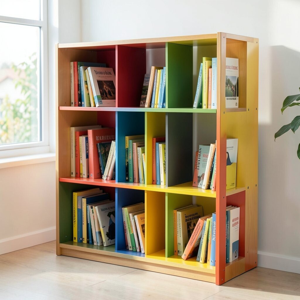 Consider using a variety of shades to match your child’s favorite colors or the room’s theme. Although slightly pricier due to its unique design, this type of bookshelf can double as a piece of art. Modern trends lean towards bold colors, making this a trendy option.