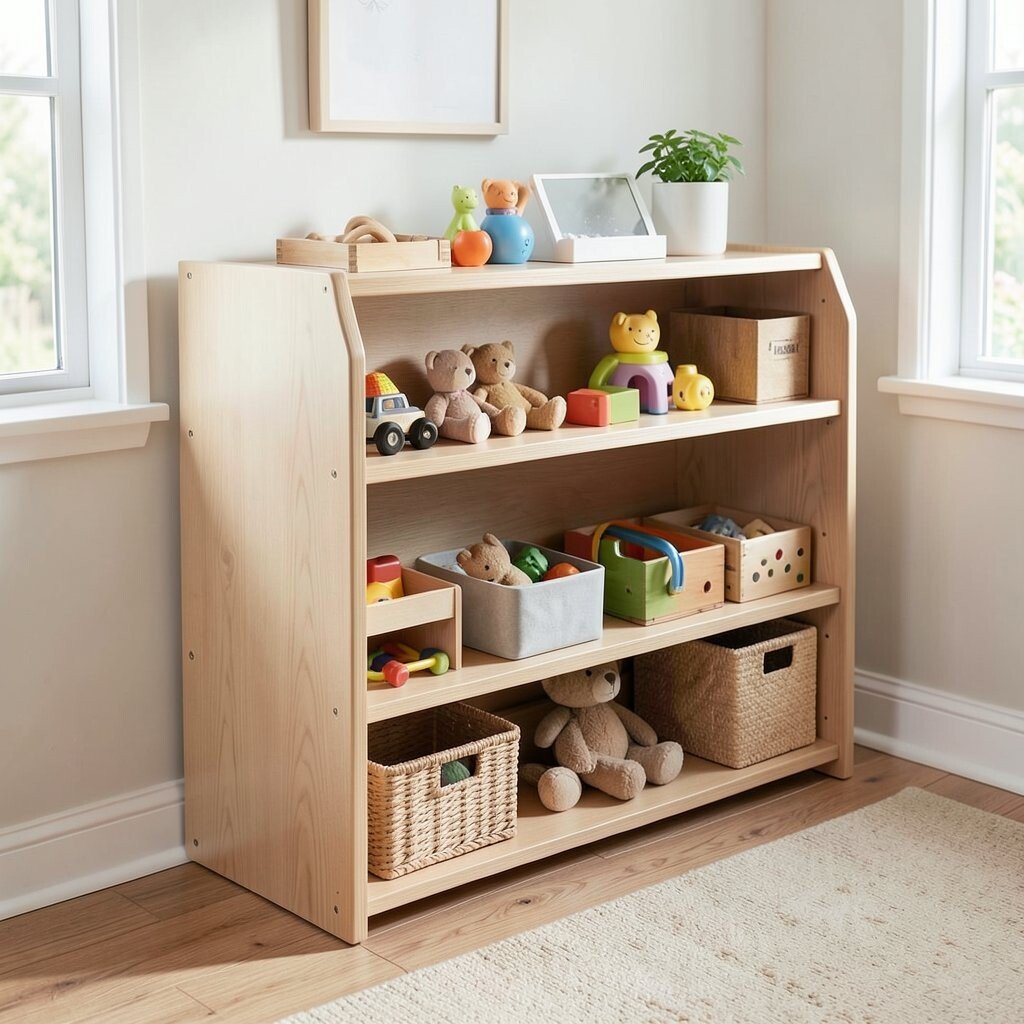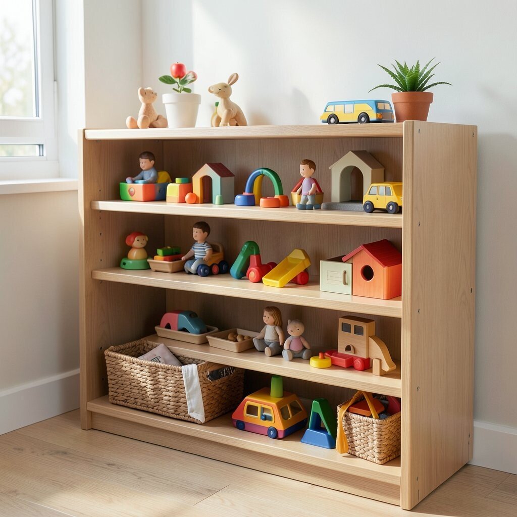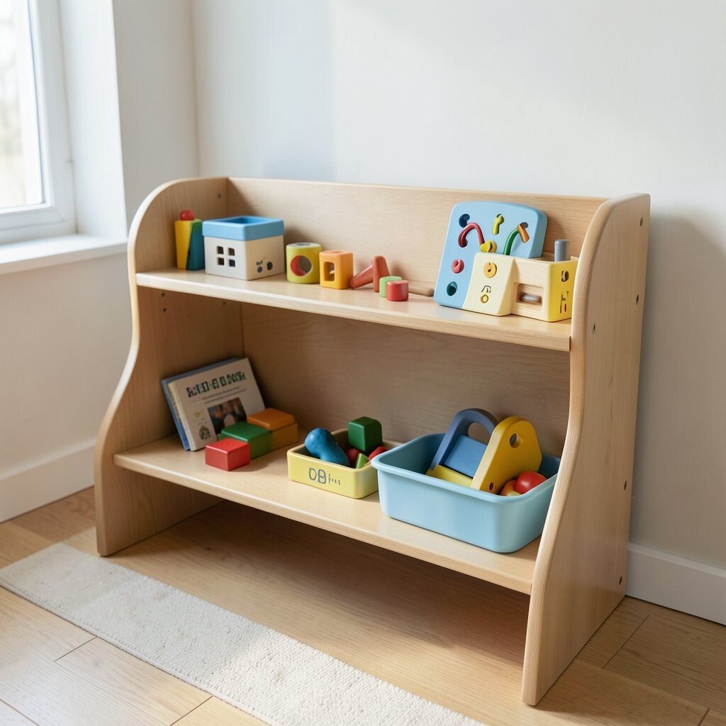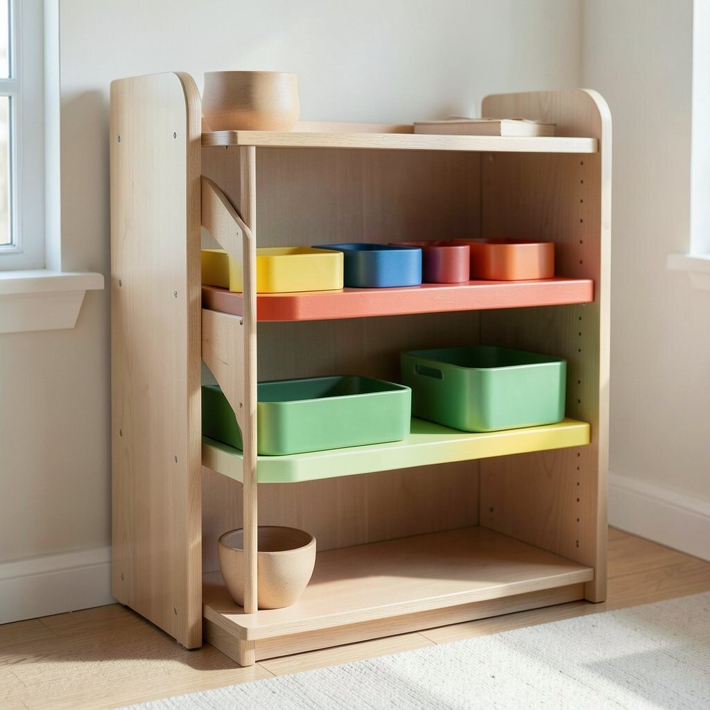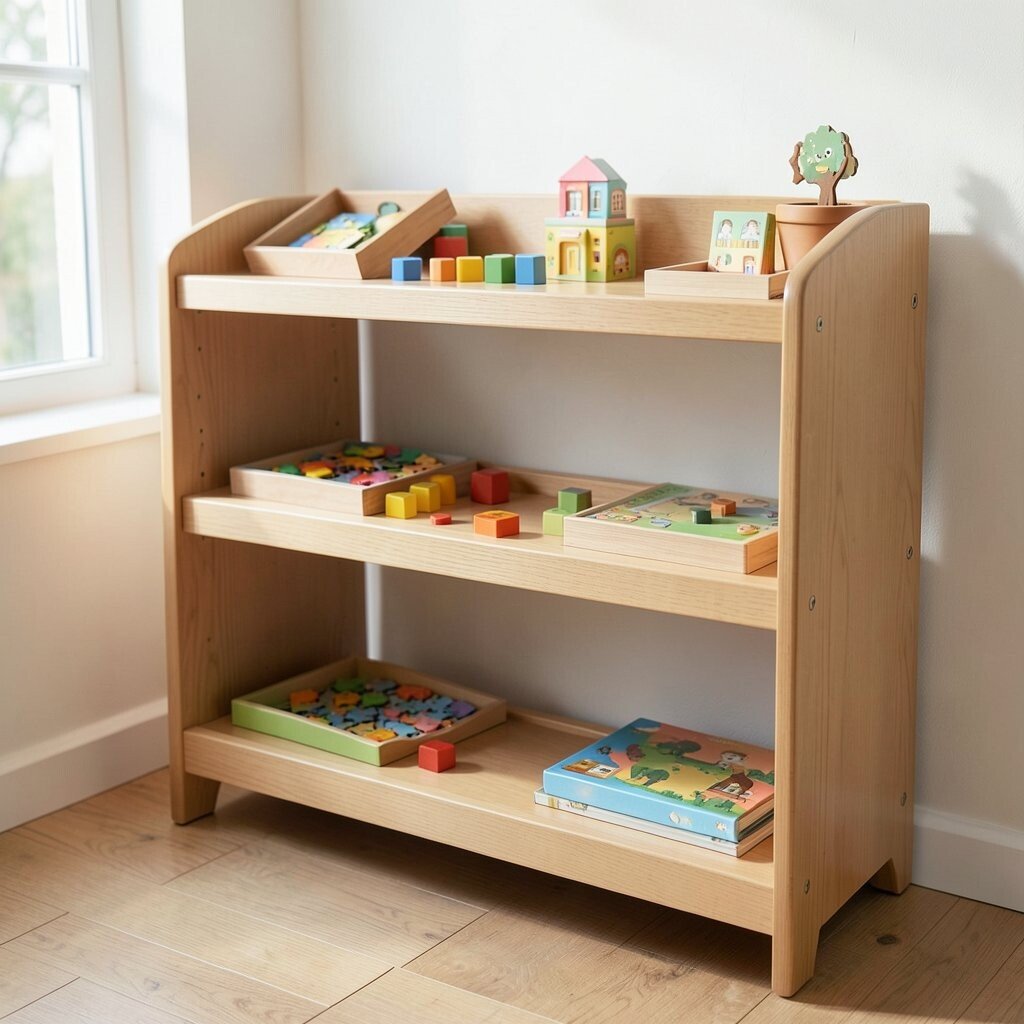 Place the shelf at eye level for easy access. Rotate the materials to keep the experience fresh. Ensure all items are safe and non-toxic for young hands.