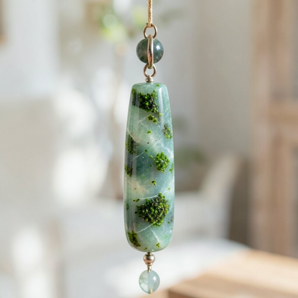 Bring soothing sounds to your garden or patio with moss agate wind chimes. These charming pieces create a peaceful ambiance.