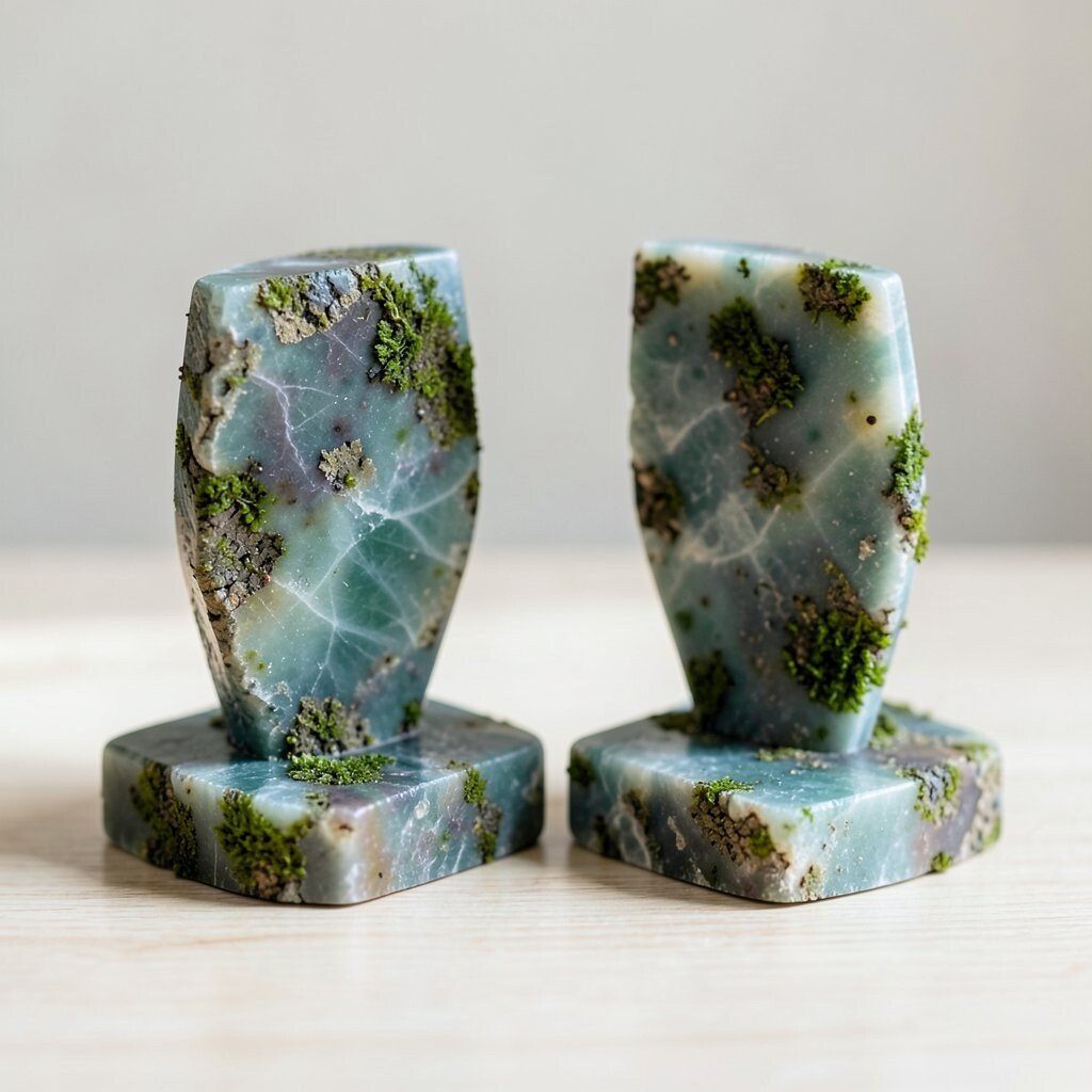 Moss agate bookends or coasters add a touch of elegance to your shelves or coffee table. Additionally, they are said to attract abundance and prosperity into your home.