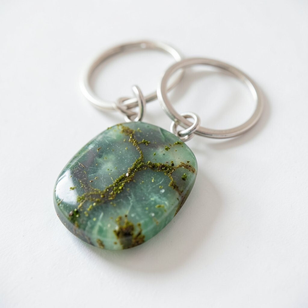 Carry a piece of nature with you wherever you go with a moss agate keychain. These small accessories are both practical and visually appealing.