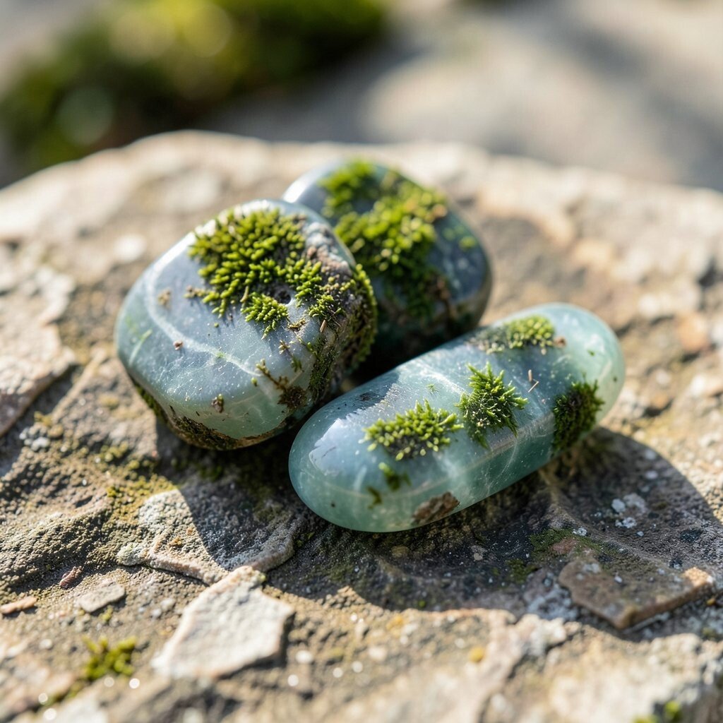 Add a touch of whimsy to your garden with moss agate accents. These stones can be used as decorative elements in planters or flowerbeds.
