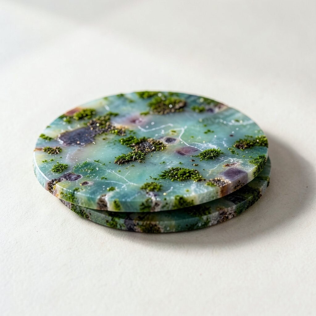 Moss agate coasters offer a stylish way to protect your furniture while adding a natural touch to your home. They are both practical and aesthetically pleasing.