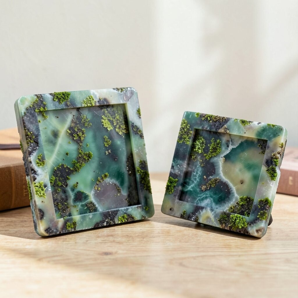 Display your cherished memories in style with moss agate picture frames. These frames add a touch of elegance to any photograph.