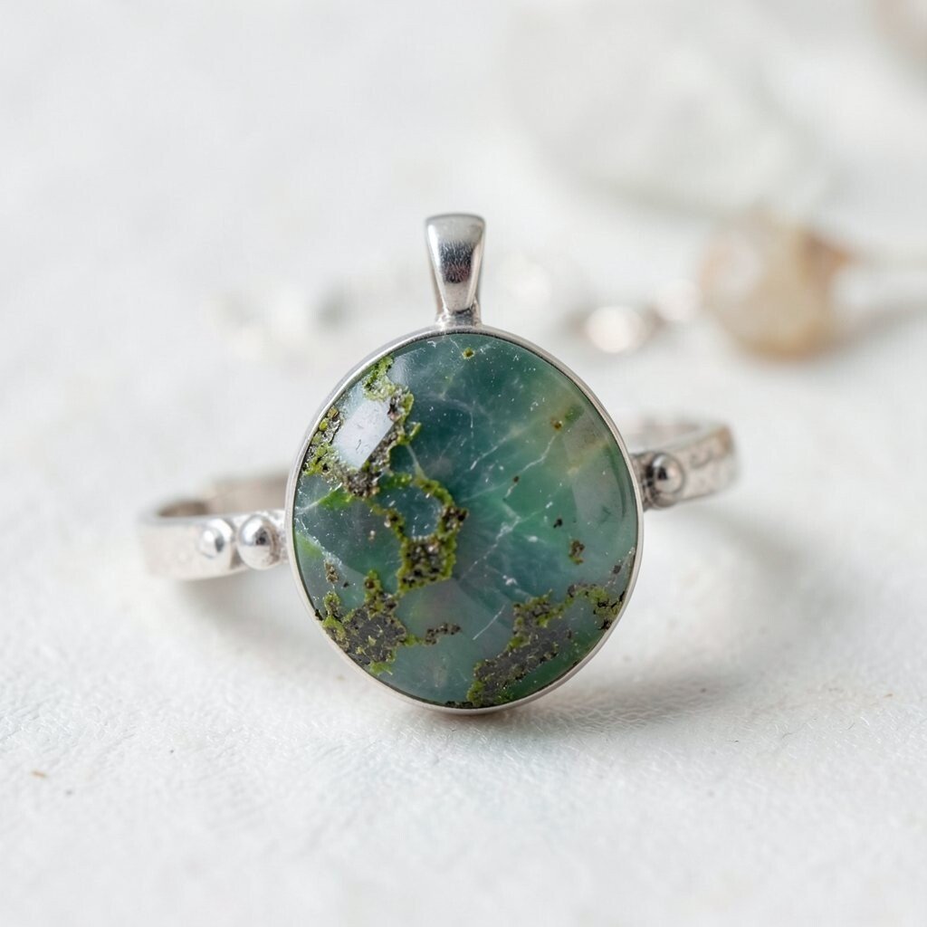 Consider earrings, necklaces, or bracelets to add a touch of nature to your outfit. Moss agate is also believed to bring emotional balance and a sense of calm to its wearer. Its organic aesthetic is perfect for those seeking to connect with the natural world.