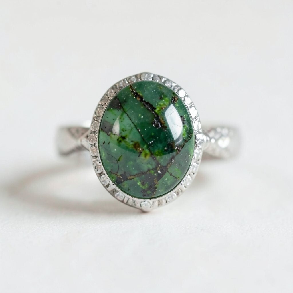 An engagement ring featuring moss agate is truly unique. It stands out from traditional diamond rings with its earthy charm.