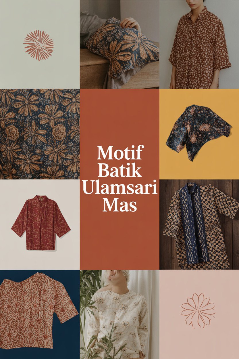 Batik Ulamsari Mas adalah salah satu motif batik khas Bali yang memiliki keindahan dan makna mendalam. Ciri khas dari Batik Ulamsari Mas terletak pada pola yang menggambarkan ikan mas (ikan emas) yang dikelilingi dengan berbagai elemen alam, seperti bunga dan daun. Motif ini dipadukan dengan warna emas dan kuning yang cerah, menciptakan kesan mewah dan anggun, serta memberikan nuansa kehidupan yang penuh harapan.