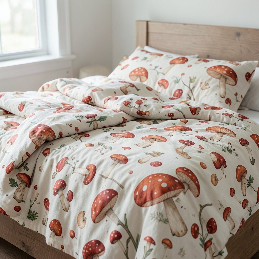 Mushroom-themed bedding can turn your bedroom into a cozy retreat. Choose from duvet covers, pillowcases, and sheets with mushroom prints.