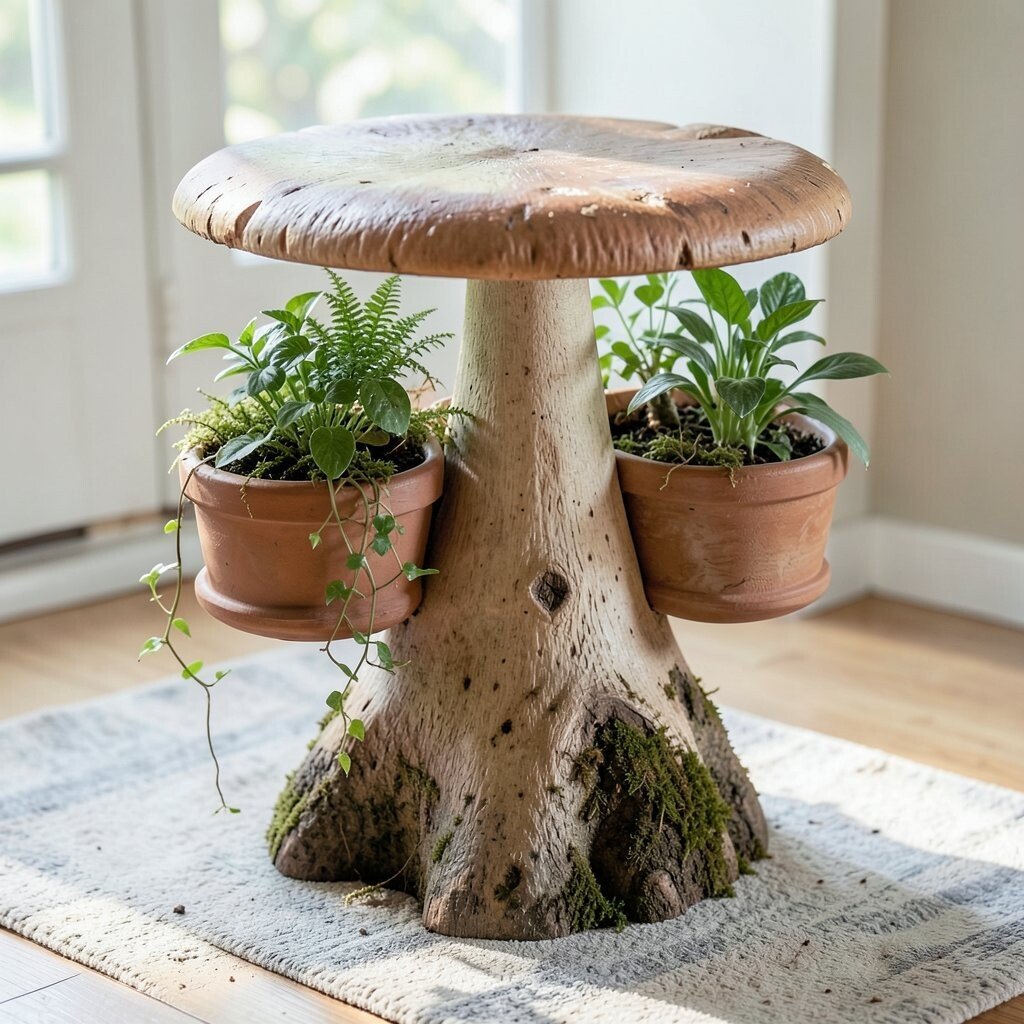 Combine nature and furniture with a mushroom table featuring built-in planters. These tables allow you to bring greenery indoors effortlessly.