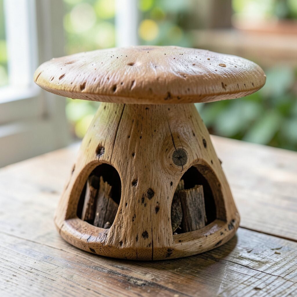 2. Rustic Wooden Mushroom Table