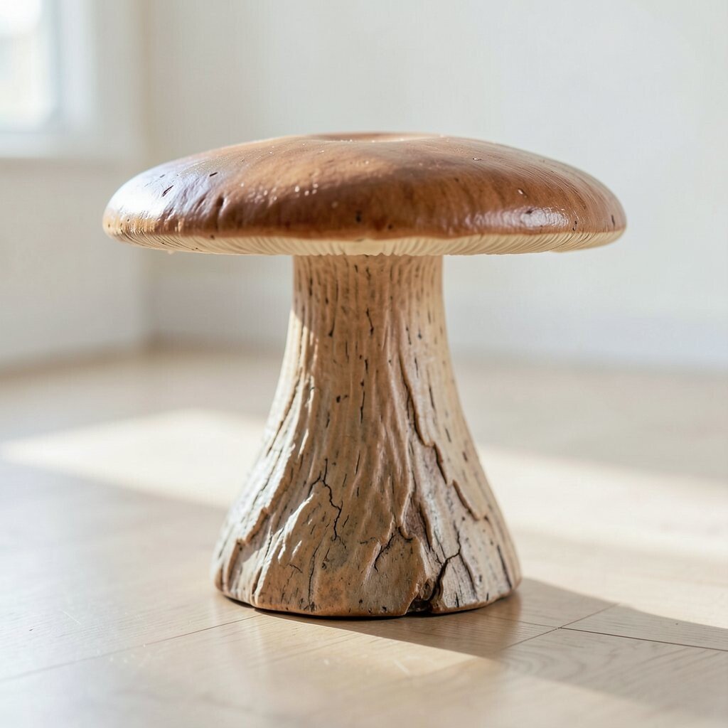 The rustic charm of wood can never be underestimated. A mushroom table carved from solid wood brings nature indoors.
