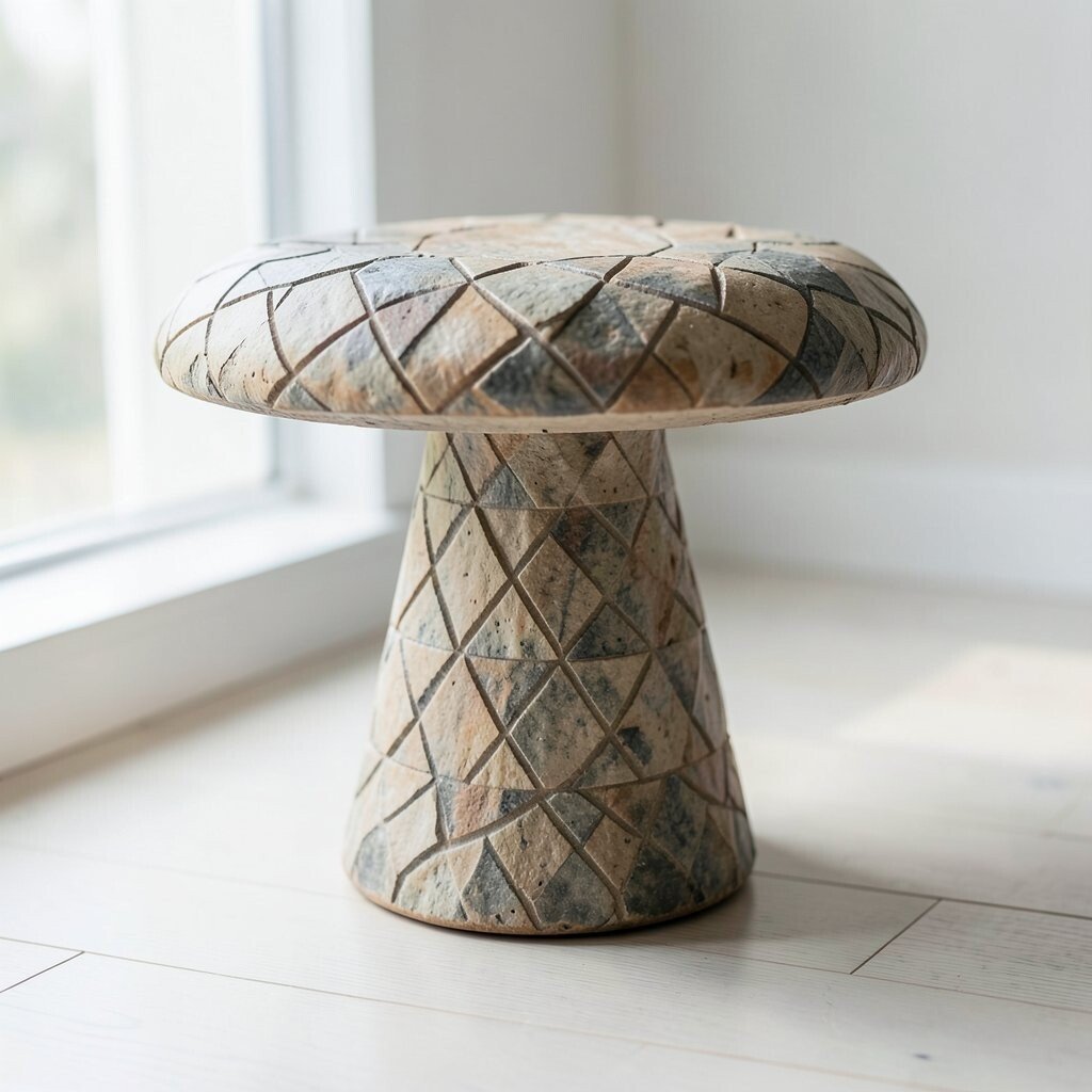 For a modern twist, choose a mushroom table with geometric patterns. These tables add visual interest and texture to your decor.