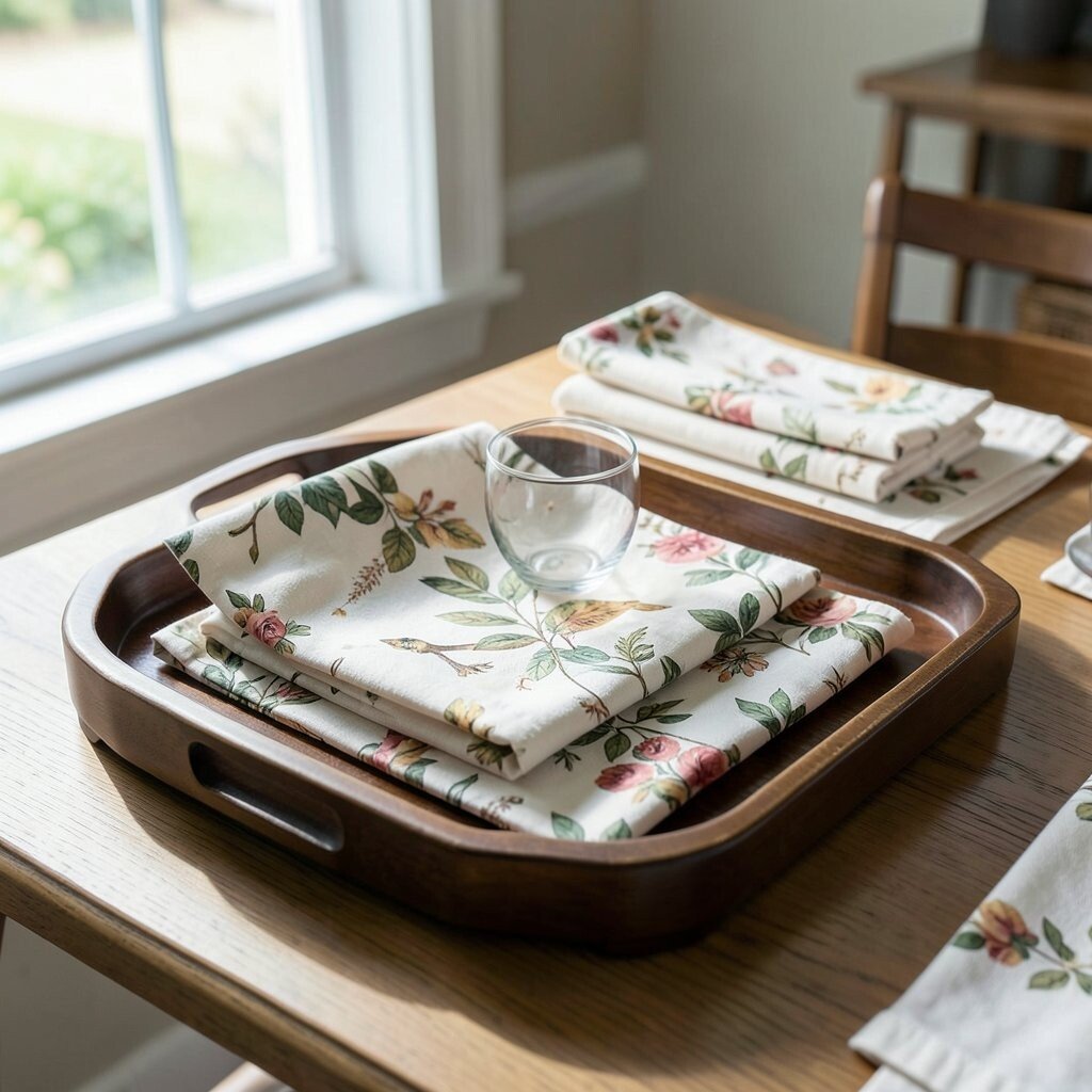 Transform serving trays with fabric for a touch of elegance. Use protective sealant for durability. They’re perfect for entertaining!