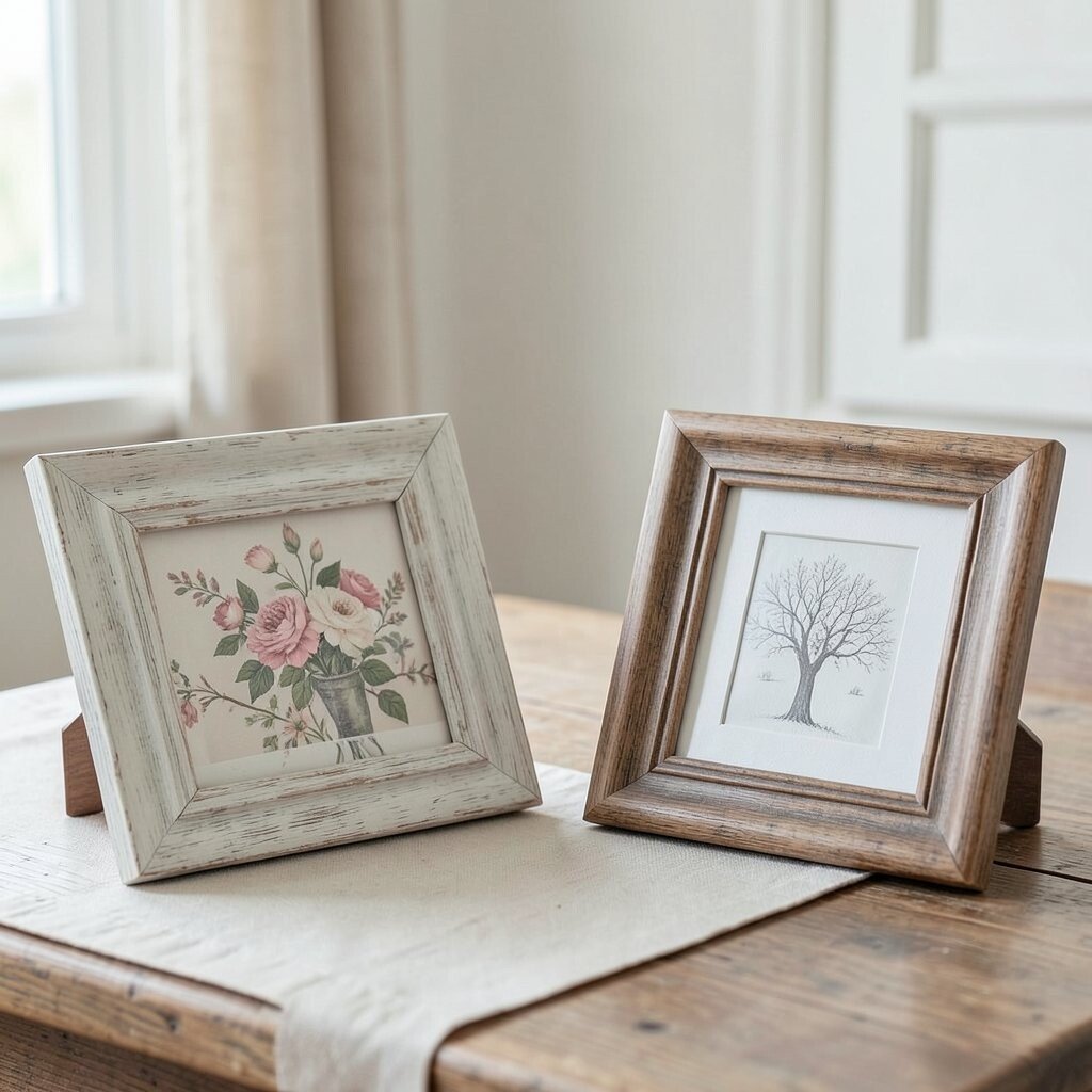 Decorate picture frames with fabric for a cozy, textured look. Use different patterns for a patchwork effect. It’s like quilting without the sewing!