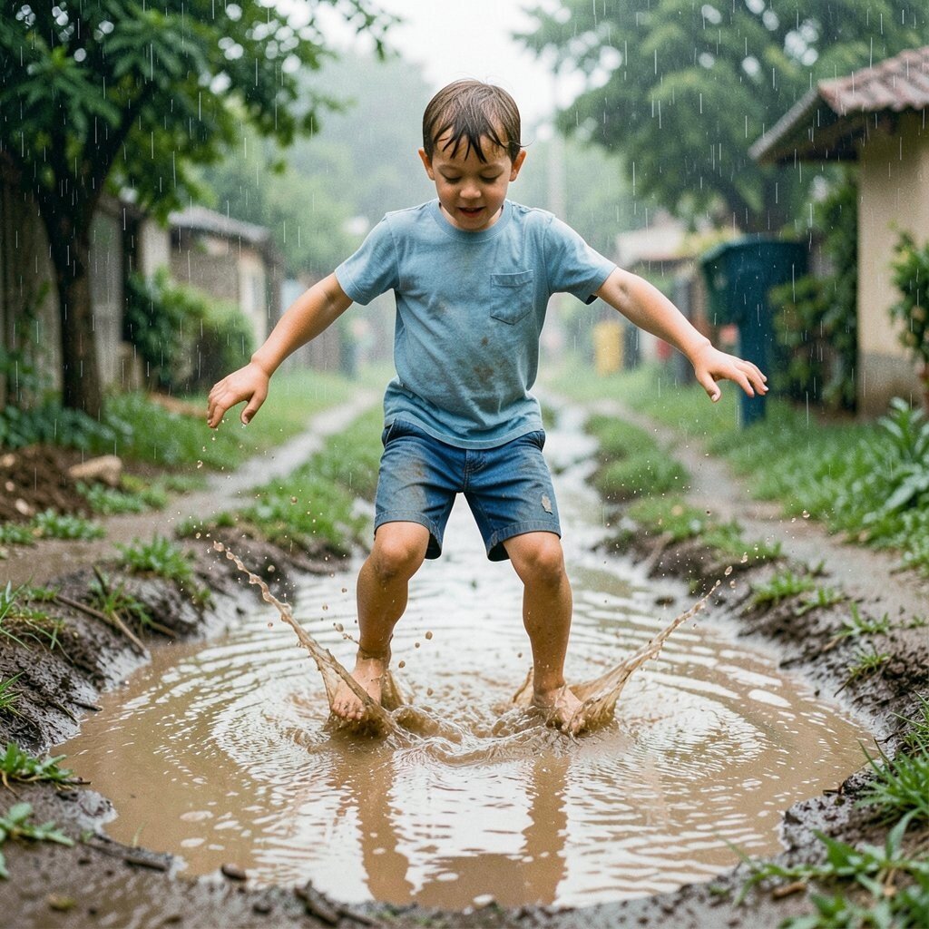 Wet shoes and muddy hems were no match for the joy of a good puddle. Each splash felt bold, loud, and a little bit wild.