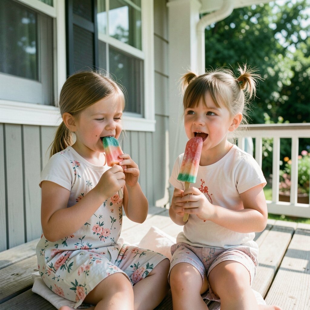 A sticky hand, a bright tongue, and a melting treat on a hot day can still make people smile. The porch, the steps, or even a small balcony can feel like a tiny summer stage.
