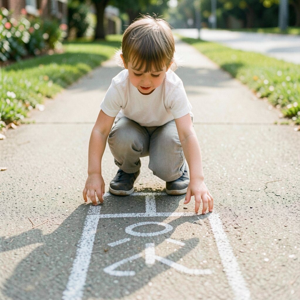 Chalk squares on warm pavement made the ground feel like a game board. One hop, two hops, and the whole street seemed to belong to the imagination.