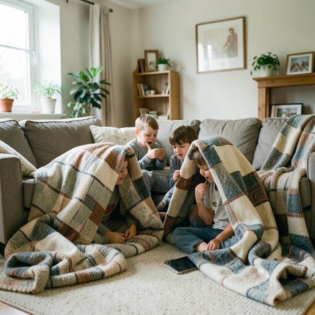 Blankets draped over chairs can turn a plain room into a secret hideout. Inside, the air feels cozy, the light feels soft, and every whisper seems important.