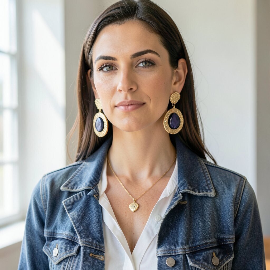 Earrings can completely change your look. Bold, dangling earrings or large hoops draw attention to your face. They’re fun and playful.