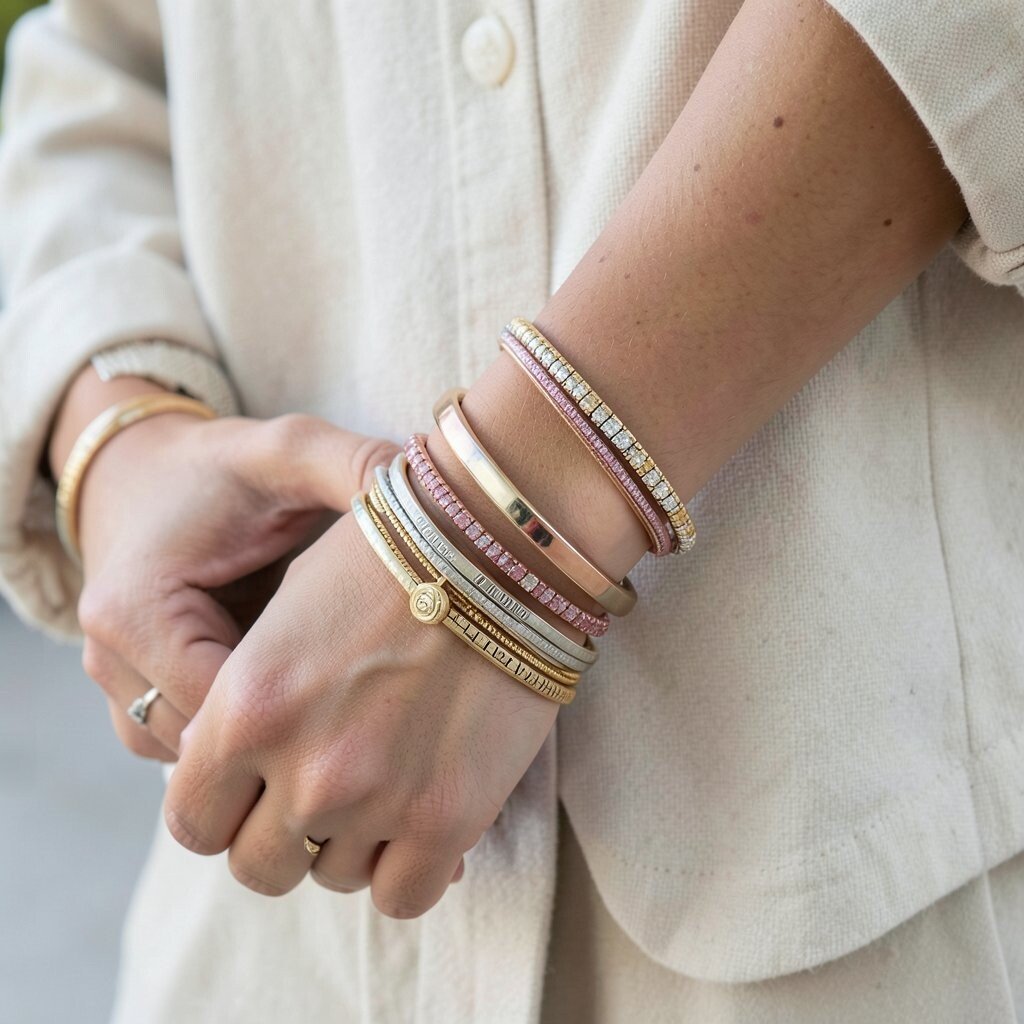 Layered bracelets are like a party on your wrist. Mix and match different styles and materials for a unique look. It’s all about creativity!