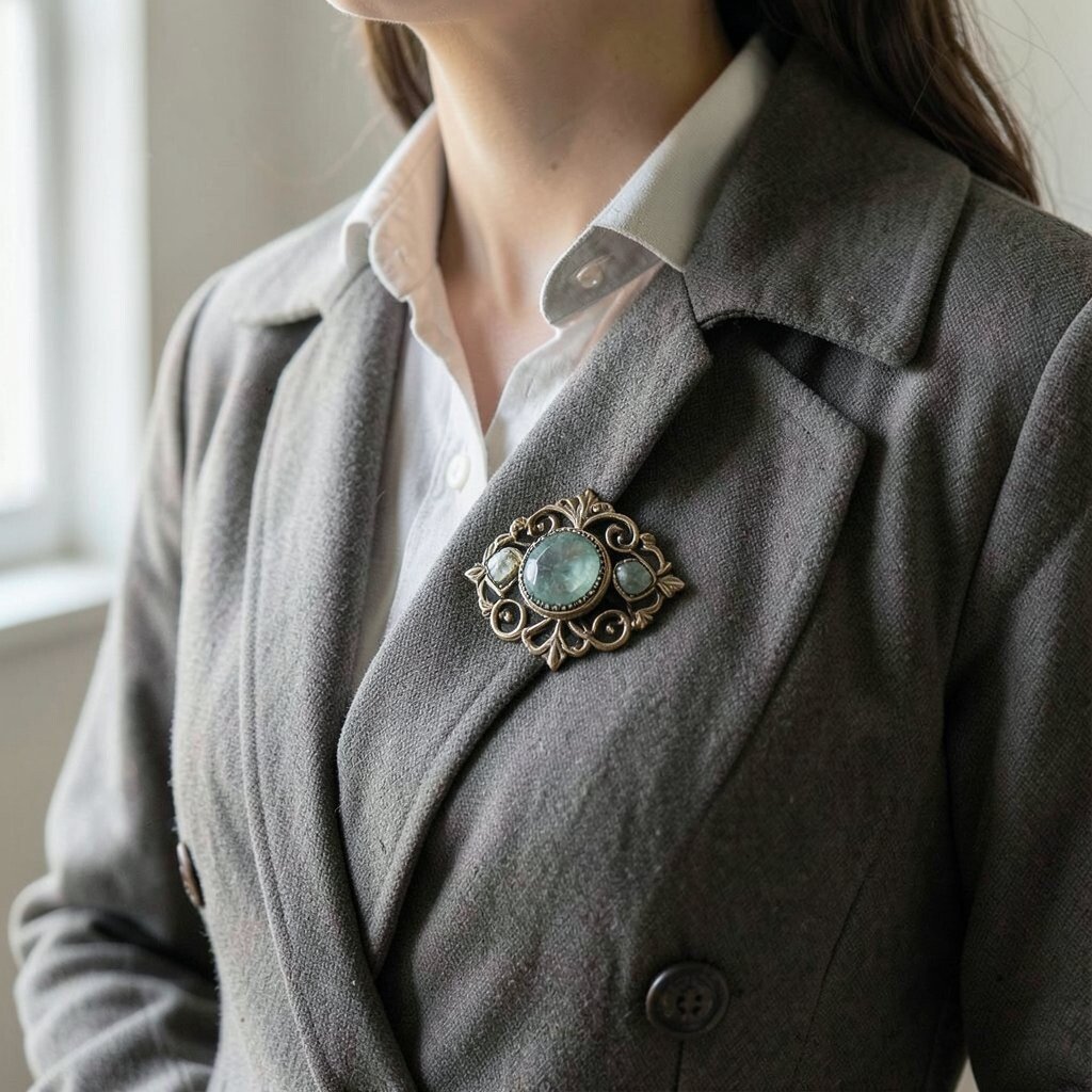 A vintage brooch is a unique accessory that adds charm. Pin it on your jacket, sweater, or even a hat.