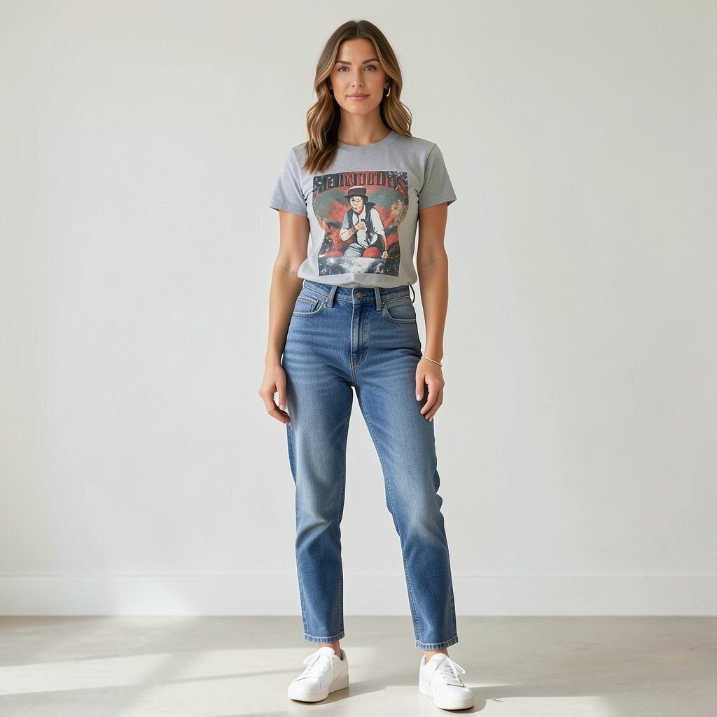 Choose a tee with a band, movie, or retro print for extra eighties charm. High-rise pants help the legs look longer and can feel more polished. Sneakers keep it laid-back, while loafers make it a little smarter.