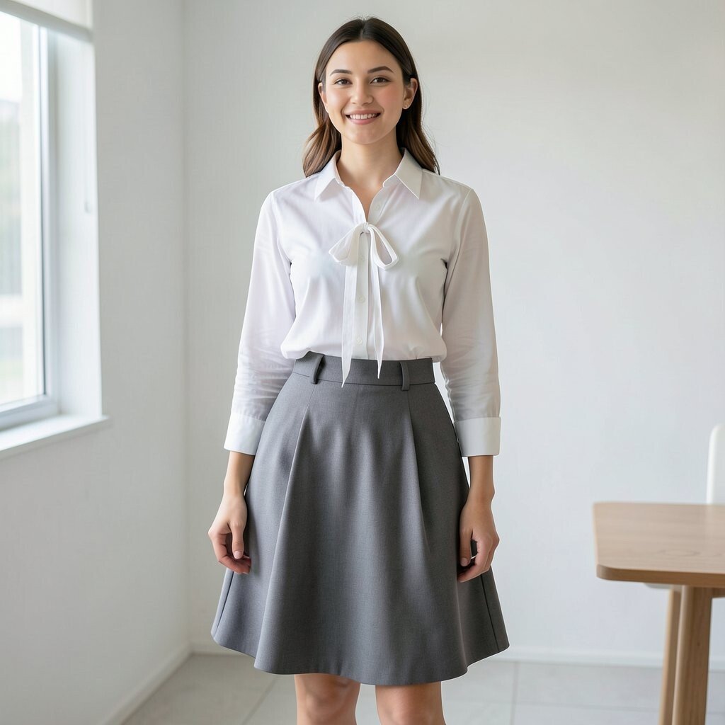 Flats or low heels both work well here. A small bag and simple earrings can finish the look nicely. This outfit is easy to adjust for school, work, or weekend plans.