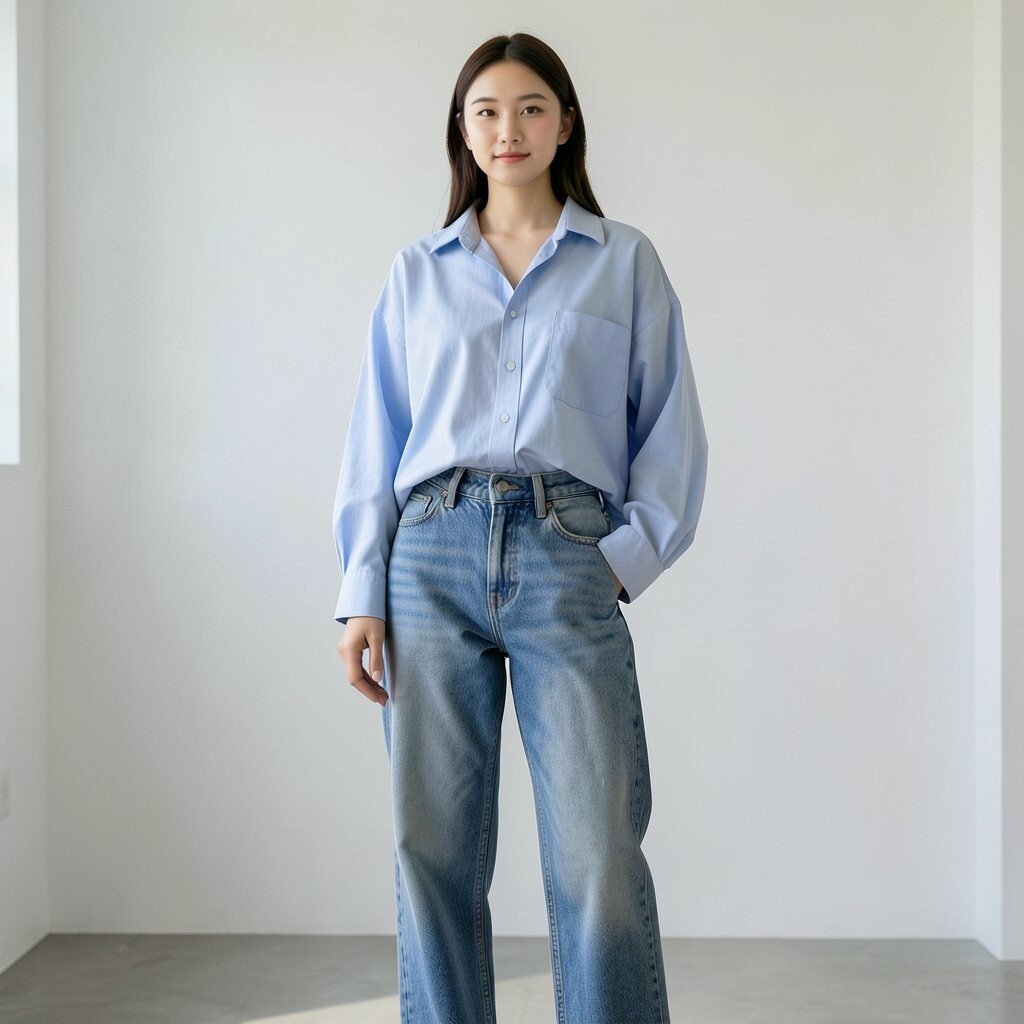 An oversized shirt with straight jeans gives a clean and relaxed look. The loose top balances the simple denim, so the outfit feels calm and easy.