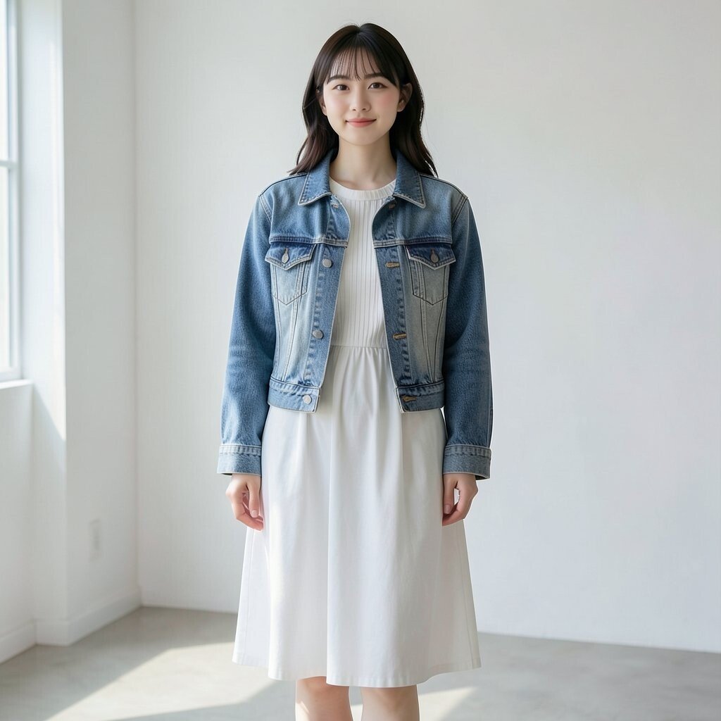A denim jacket with a white dress makes a sweet and easy outfit. The jacket adds a casual layer, while the dress keeps the look light and fresh.