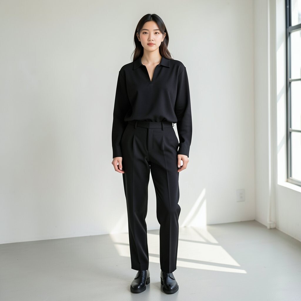 A monochrome black outfit looks sleek, bold, and very easy to style. When each piece stays in the same color family, the whole look feels strong and neat.