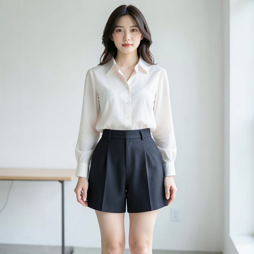 A blouse with tailored shorts gives a neat and polished warm-weather outfit. The blouse adds softness, while the shorts keep the look fresh and easy to wear.