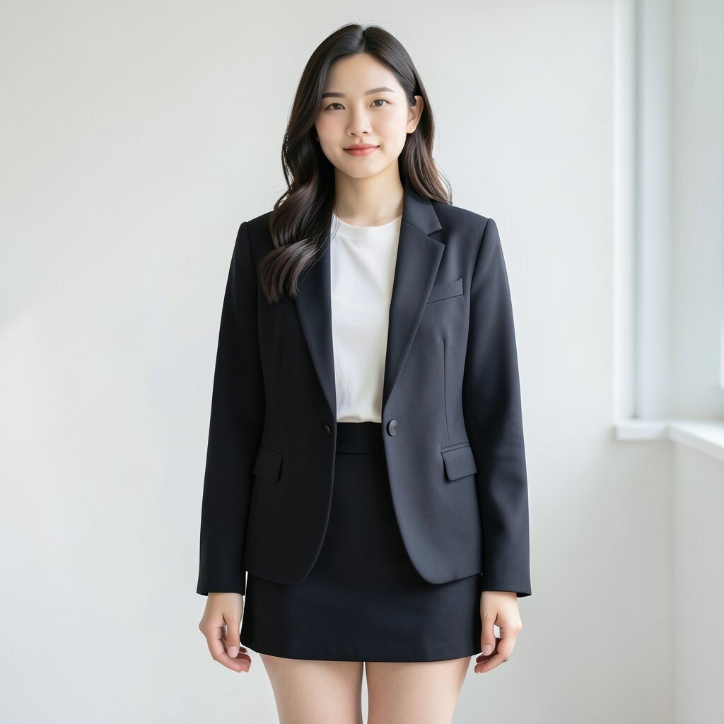 A loose blazer with a mini skirt gives a smart and stylish Korean street look. The big shape of the blazer makes the outfit feel modern, while the short skirt keeps it playful.